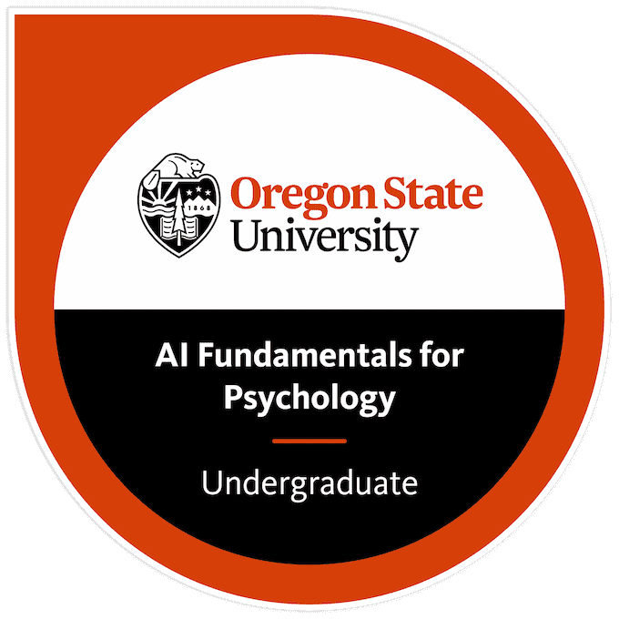 This is one microcredential within a suite of AI-related offerings from Oregon State, an initiative that — regardless of your career interests — enables you to upskill and explore how AI tools can be used ethically within a specific industry. The third course (PSY 240) can be taken anytime. Learn more about OSU’s collection of AI microcredentials.